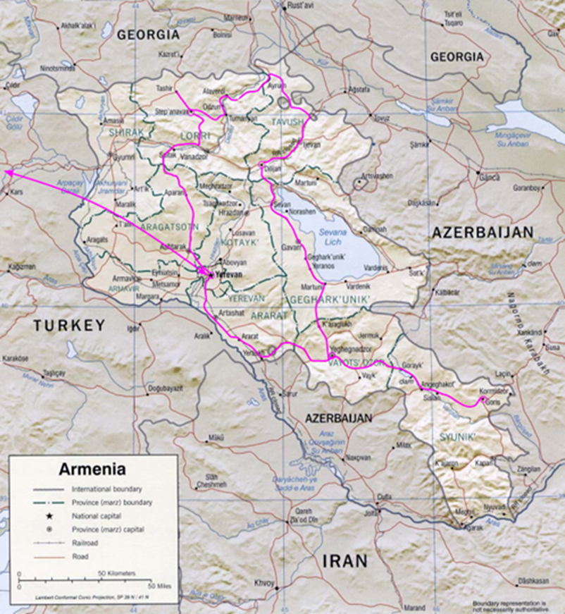 Samstag: Der Samstag ist Reisetag. Je nach Verbindungen werden wir mit dem Abendflug ab Zürich (mit Zwischenstopp), oder ab Mailand Malpensa, das wir per Bahn erreichen, nach Yerevan reisen, wo wir in der Nacht ankommen und ins Hotel fahren.